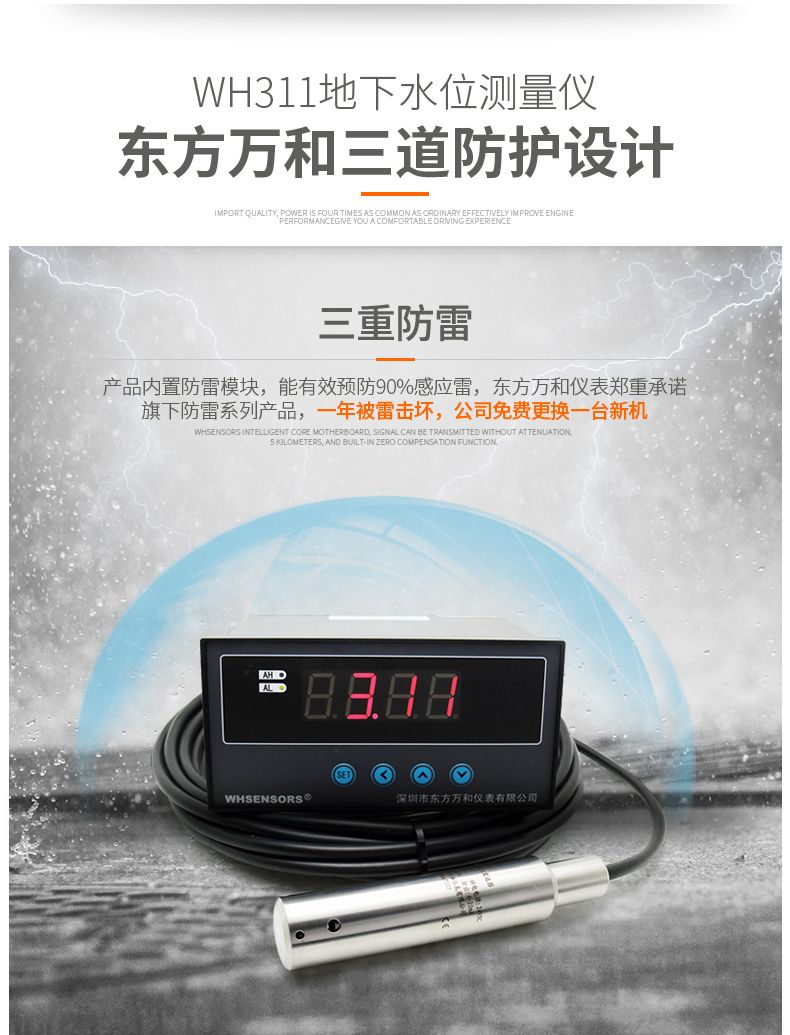 1 WH311地下水位监测仪可以在控制室实时显示地下水实际深度,方便地下水监测为地下水监测管理部门对辖区内地下水水位、水质等数据进行监测,以便及时掌握动态变化情况,对地下水进行长期的保护。